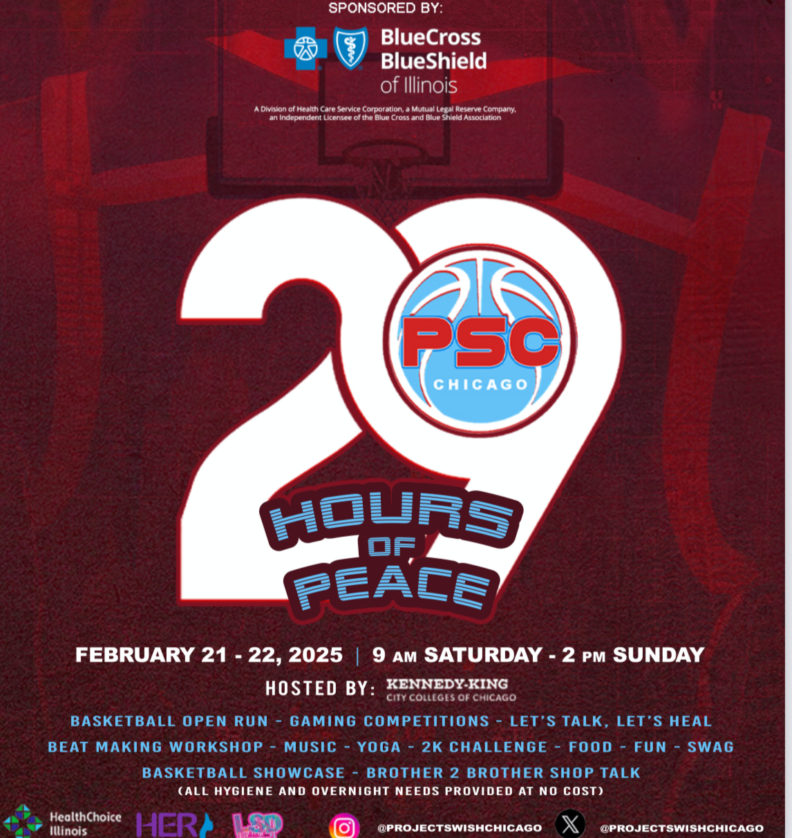 29 Hours of peace will allow PSC to provide a safe space for 120 young men to have a platform to be vulnerable about their mental health while promoting healing via unconventional therapy (Yoga, meditation, art therapy, massage therapy, panel discussions and so much more). All overnight and hygiene needs will be included. Please register at the link below.